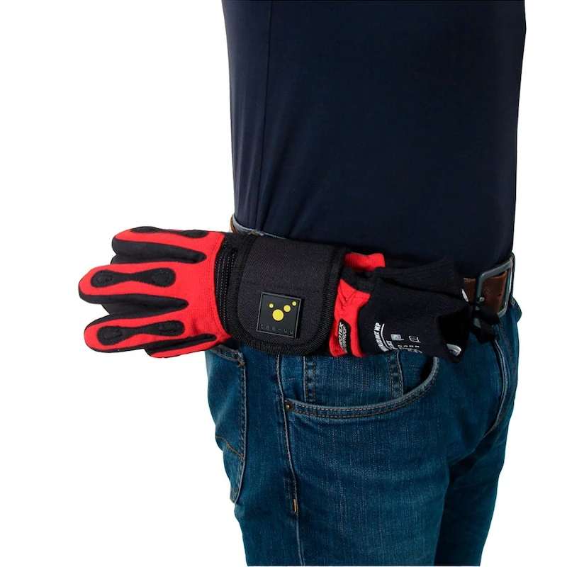 Mit dem langlebigen Klettverschluss schließt sich das Holster fest um die Handschuhe, unabhängig von ihrer Größe. Zusätzlich ist das Holster an der Innenseite mit einer breiten Elastikschlaufe ausgestattet. Damit lassen sich auch Infektionsschutzhandschuhe, geschützt gegen Beschädigung im Holster mitführen und sind bei Bedarf schnell zur Hand.