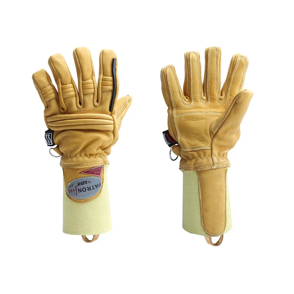 Innenhand: Spezial-Elchleder, Innenhandverstärkung Elchleder, hitzebeständig, hydrophobiert, schrumpfoptimiert gegerbt, anatomische Schnittführung