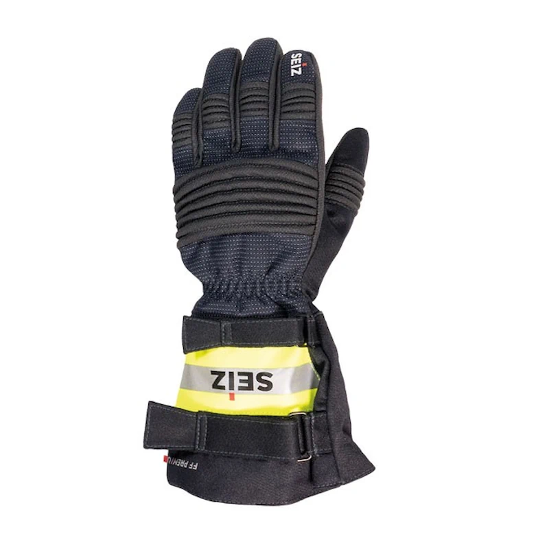 - Weite Stulpe aus NOMEX® mit doppeltem Verschlusssystem für perfekten Sitz in Extremsituationen. Reflexstreifen aus 3M ScotchliteTM. 2x D-Ring und Karabiner zur Befestigung der Handschuhe an der Einsatzjacke.
