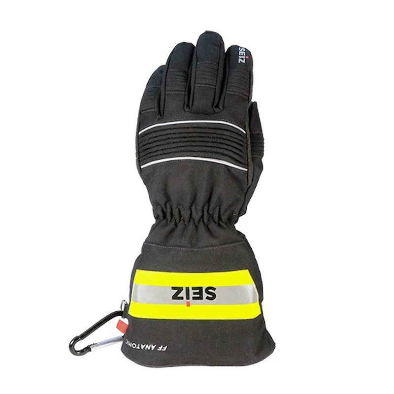 - Rückhand: NOMEX® mit unserem speziell entwickelten SEIZ® Heat Absorber und Reflexelementen über den Knöcheln. Gummibandraffung am Handgelenk.