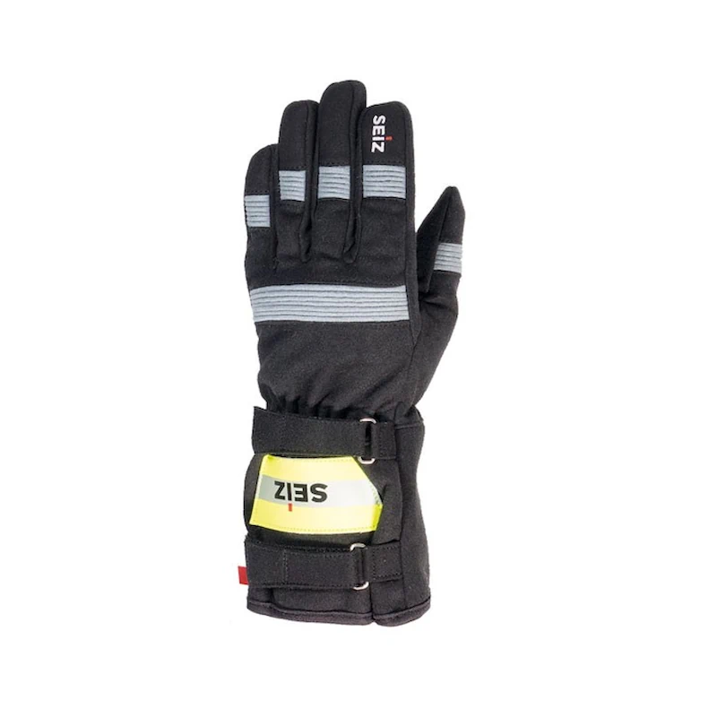 - Stulpe: Doppelter Klettverschluss für perfekten Sitz. Pulsschutz am Handgelenk. Rückseitig mit gelb-silber-gelbem Signalstreifen und einem System aus D-Ring und Haken aus Kunststoff zur Befestigung der Handschuhe an der Einsatzjacke. Mit Gummibandraffung zum Schutz vor Glassplittern und Schmutz.