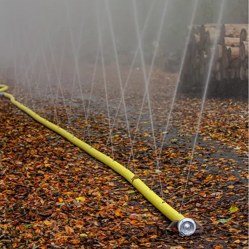 Die fest montierten Kunststoffdüsen im 1-Meter-Abstand sorgen für eine gleichmäßige Wasserverteilung bei einem Arbeitsdruck bis 5 bar und einem Wasserdurchfluss von bis zu 60 l/min. Der Schlauch ist beidseitig mit Kupplungen ausgestattet und mit ICONOS Klemmgleitringen eingebunden – für maximale Betriebssicherheit.