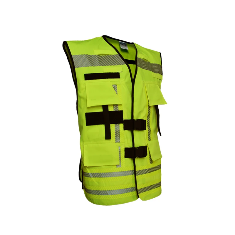 Praktische Verstellmöglichkeiten: seitlich elastisches Band mit Schnalle, vorne 2 Schnallen zum Schließen. Universalgröße, ohne Klettschilder. Perfekt für Einsatzkräfte, die Wert auf Sichtbarkeit, Funktionalität und Komfort legen.